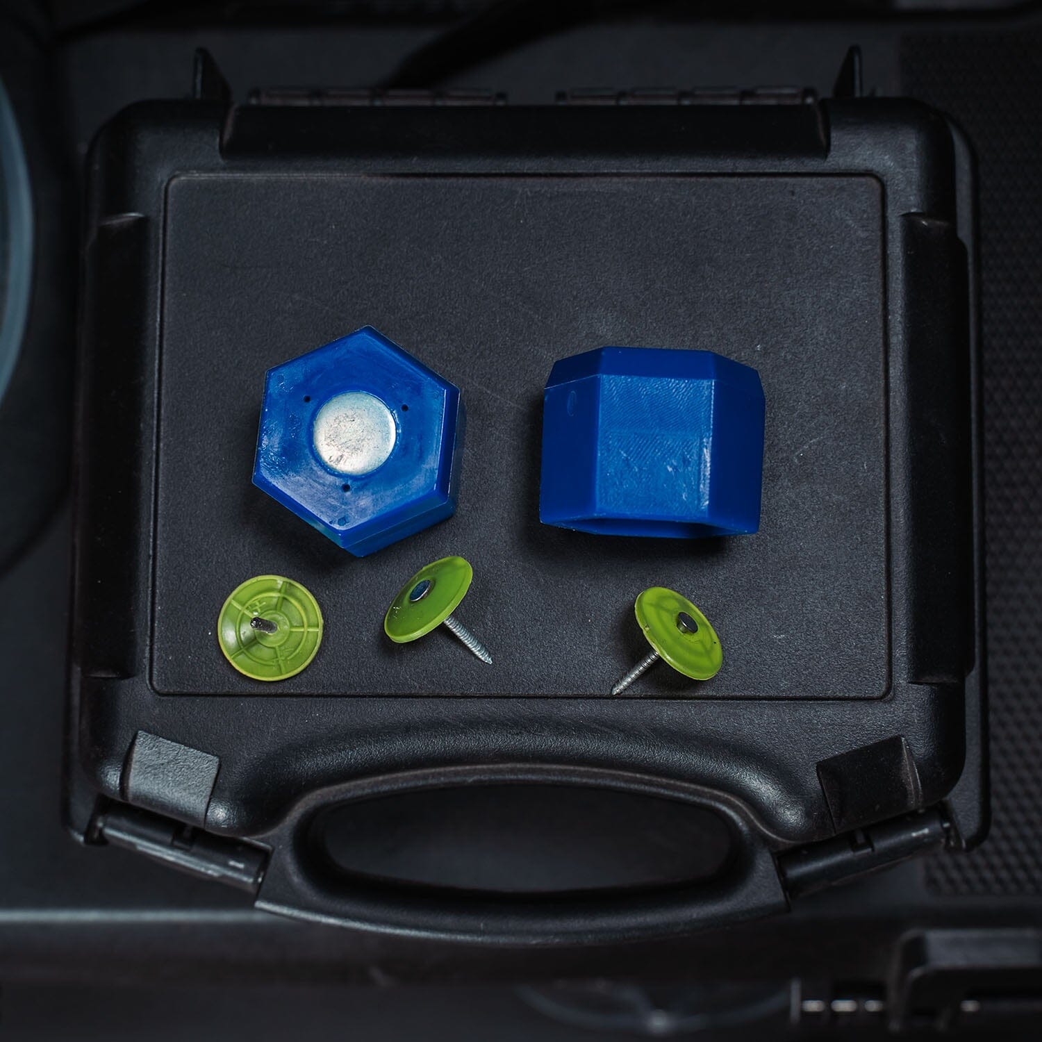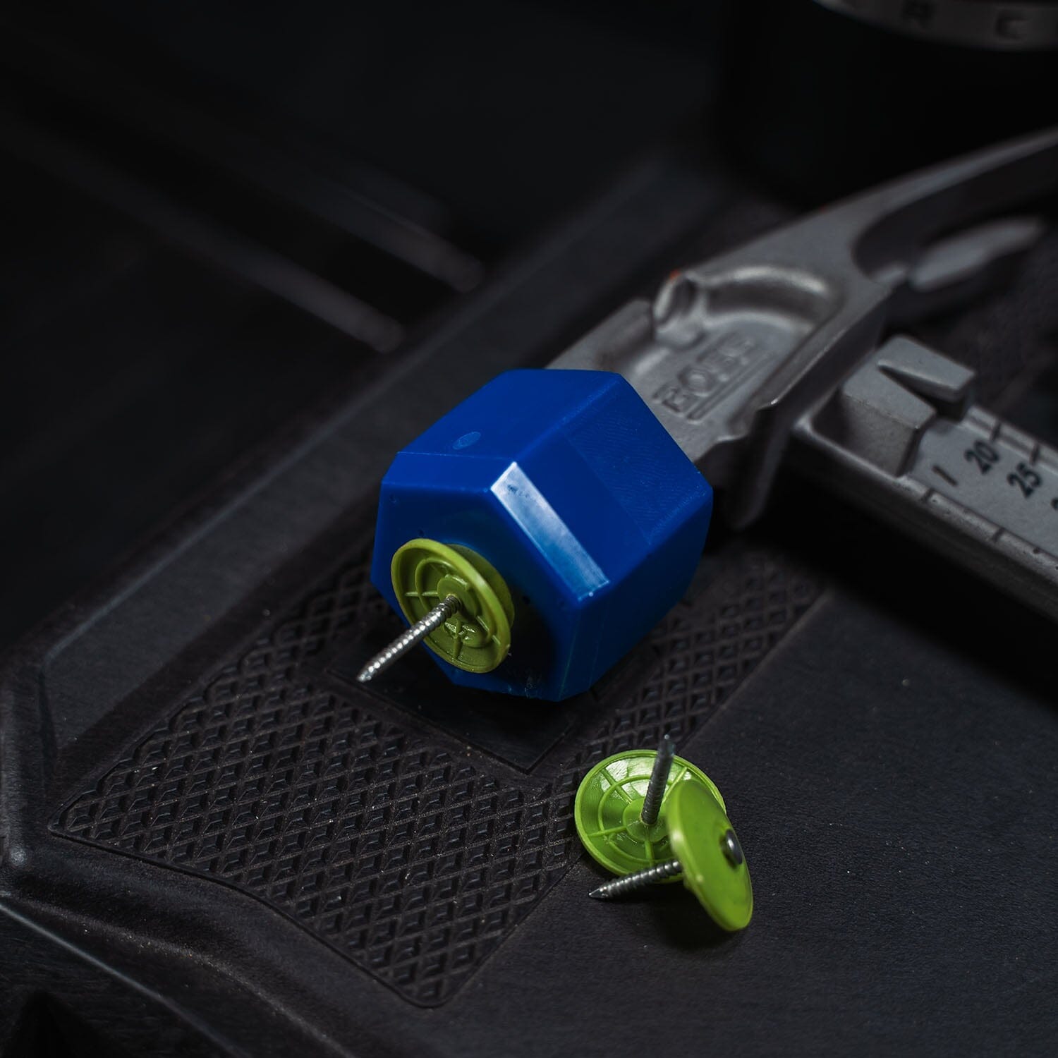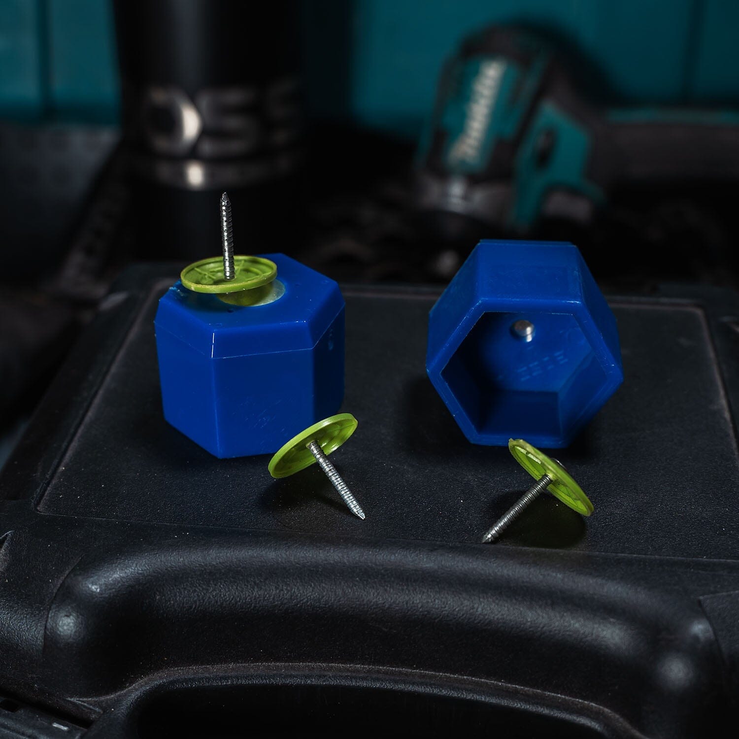The Magnetic Cap was designed to easily load roofing nails, button cap nails, and any other short metal fasteners. Featuring a patented, built in striking face with a strong magnet molded directly into the cap. Driving stub nails has never been faster! Friction fit: simply push the cap on the face of the hammer and remove when not in use! Made in USA.