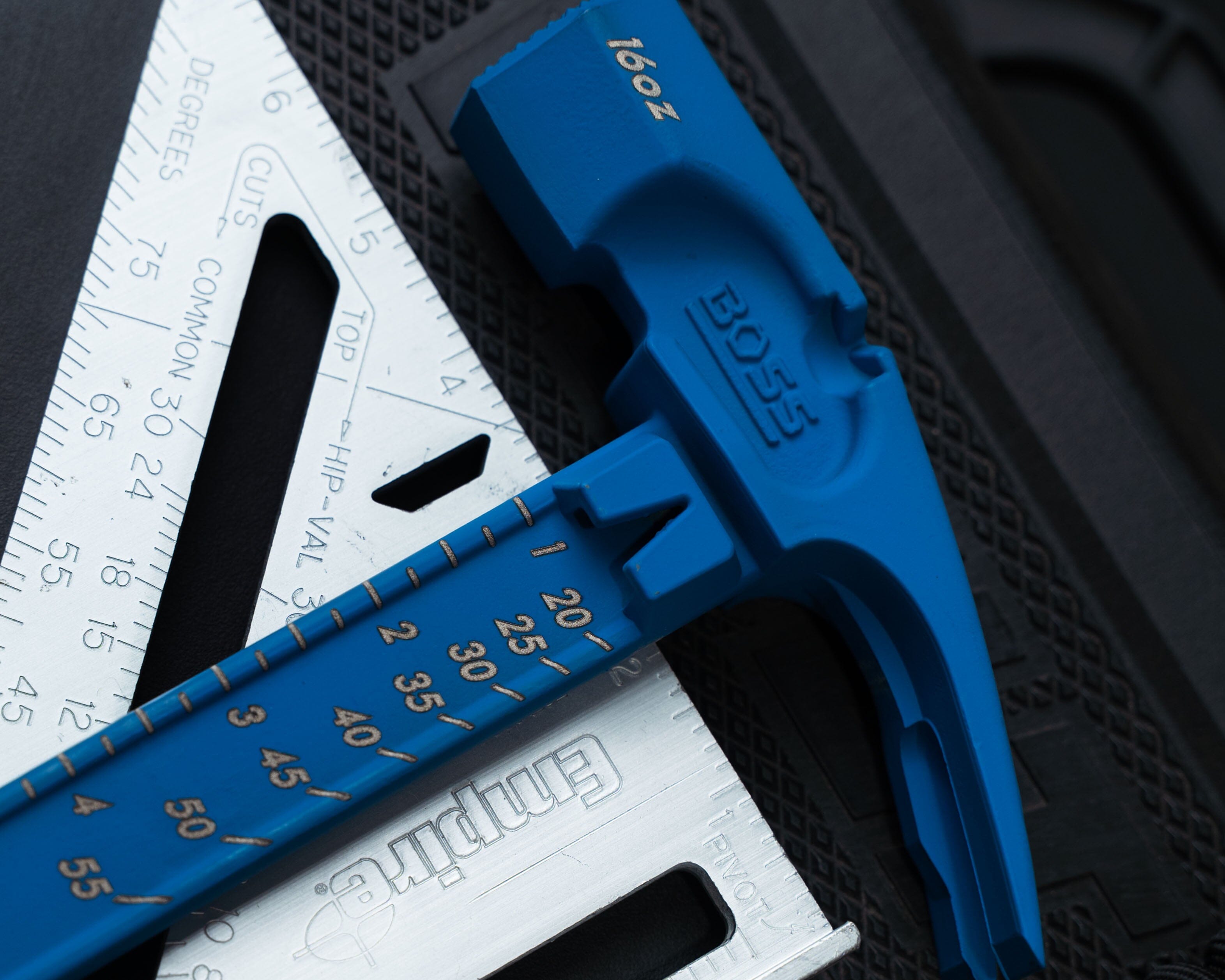 - SQUARE ONE: Quickly mark angle cuts or rafter pitches with a pivot of the hammer.
