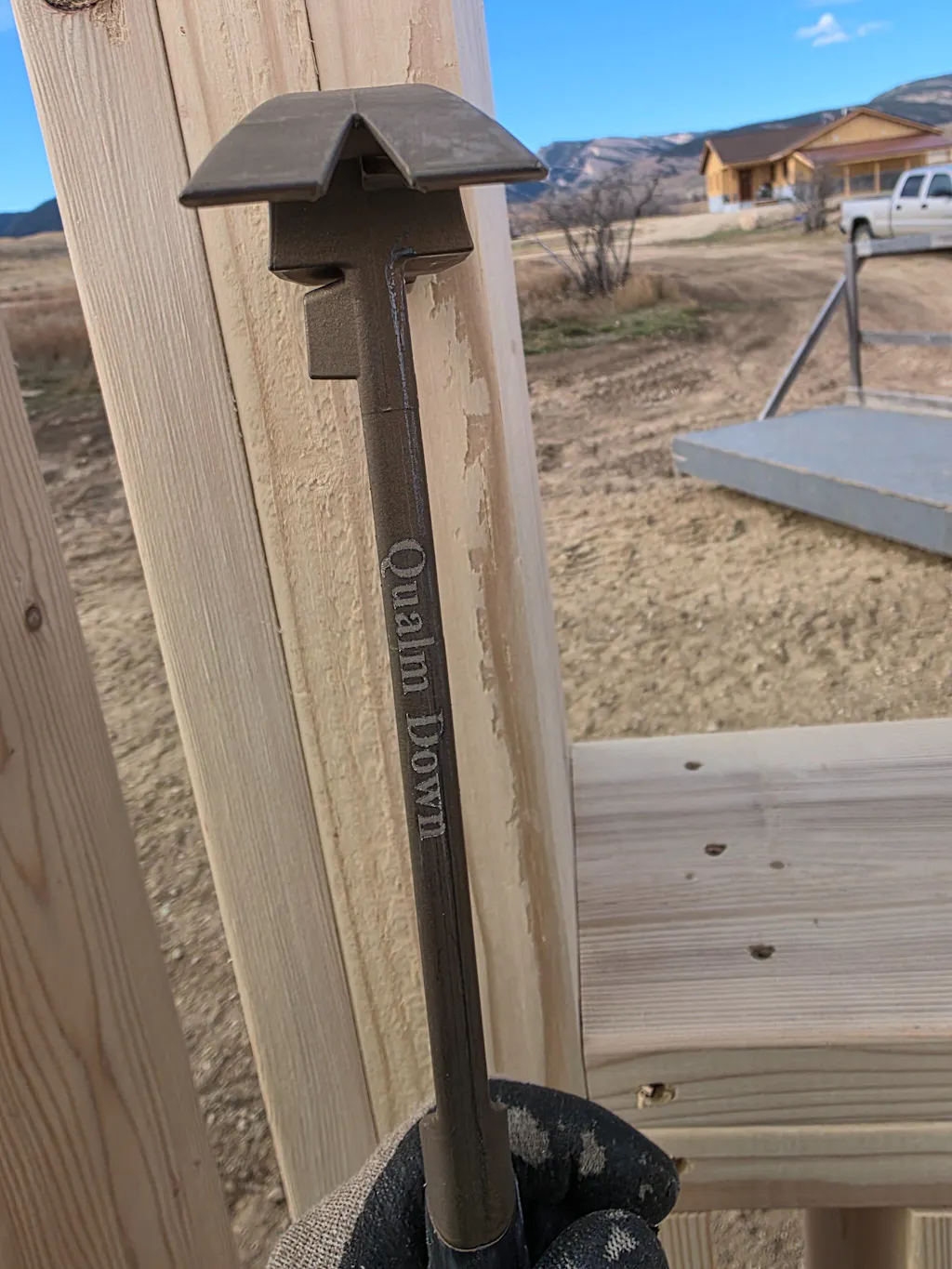 Align the shoulder of the hammer head to mark a quick 90 degree line, up to 14" across!